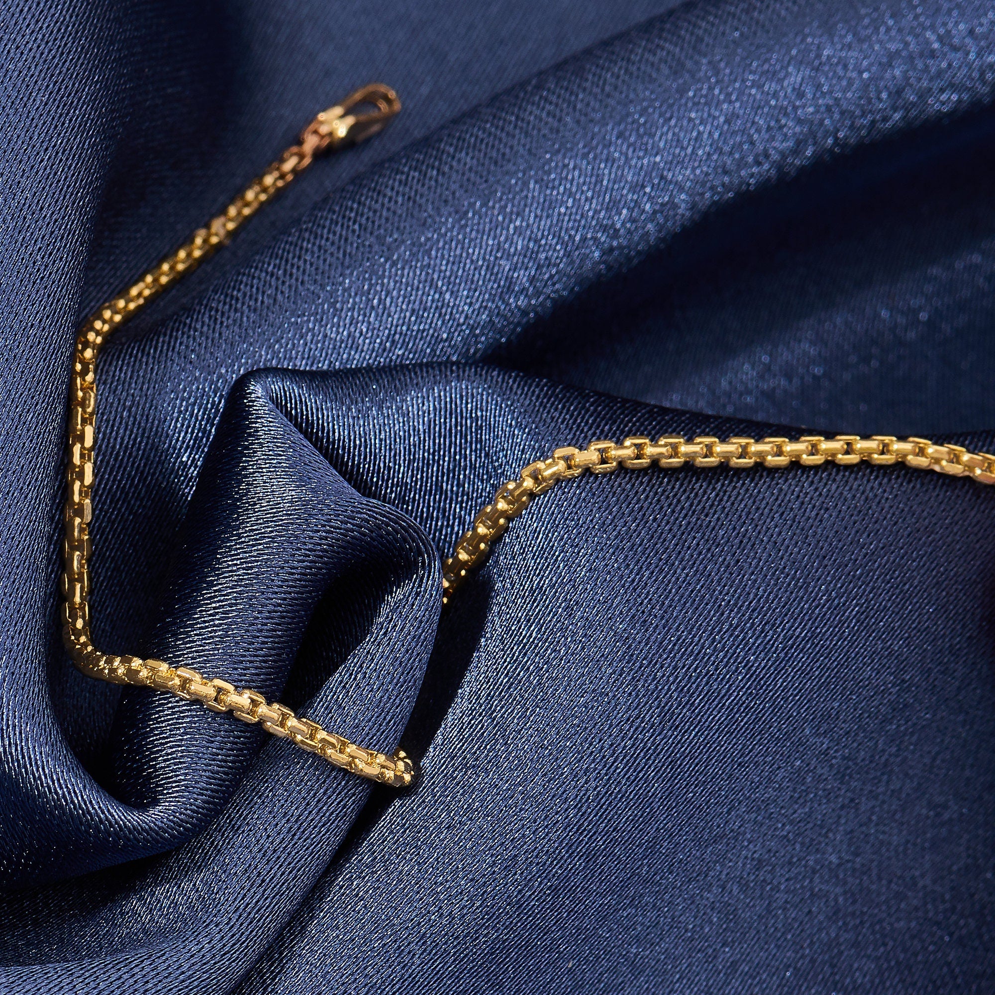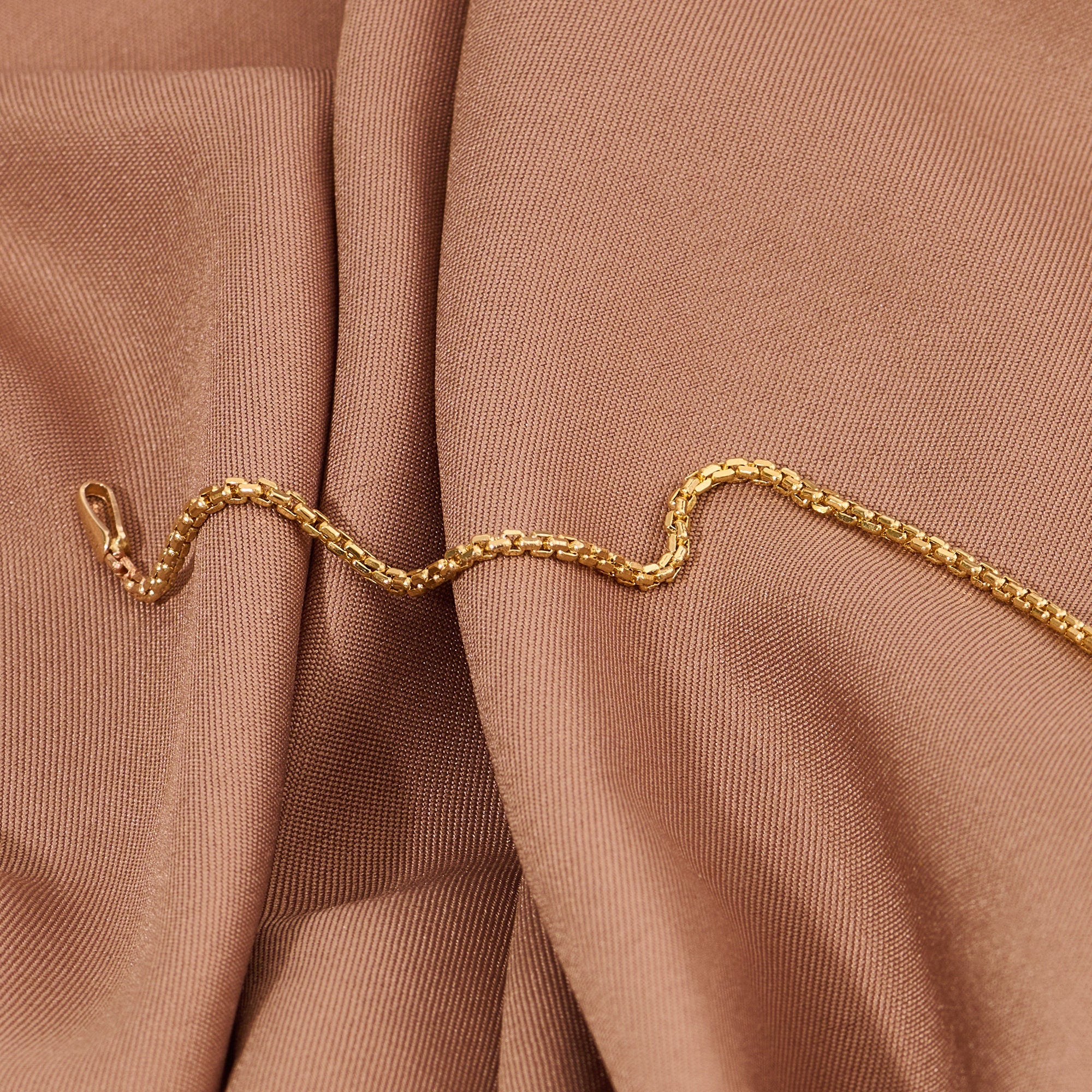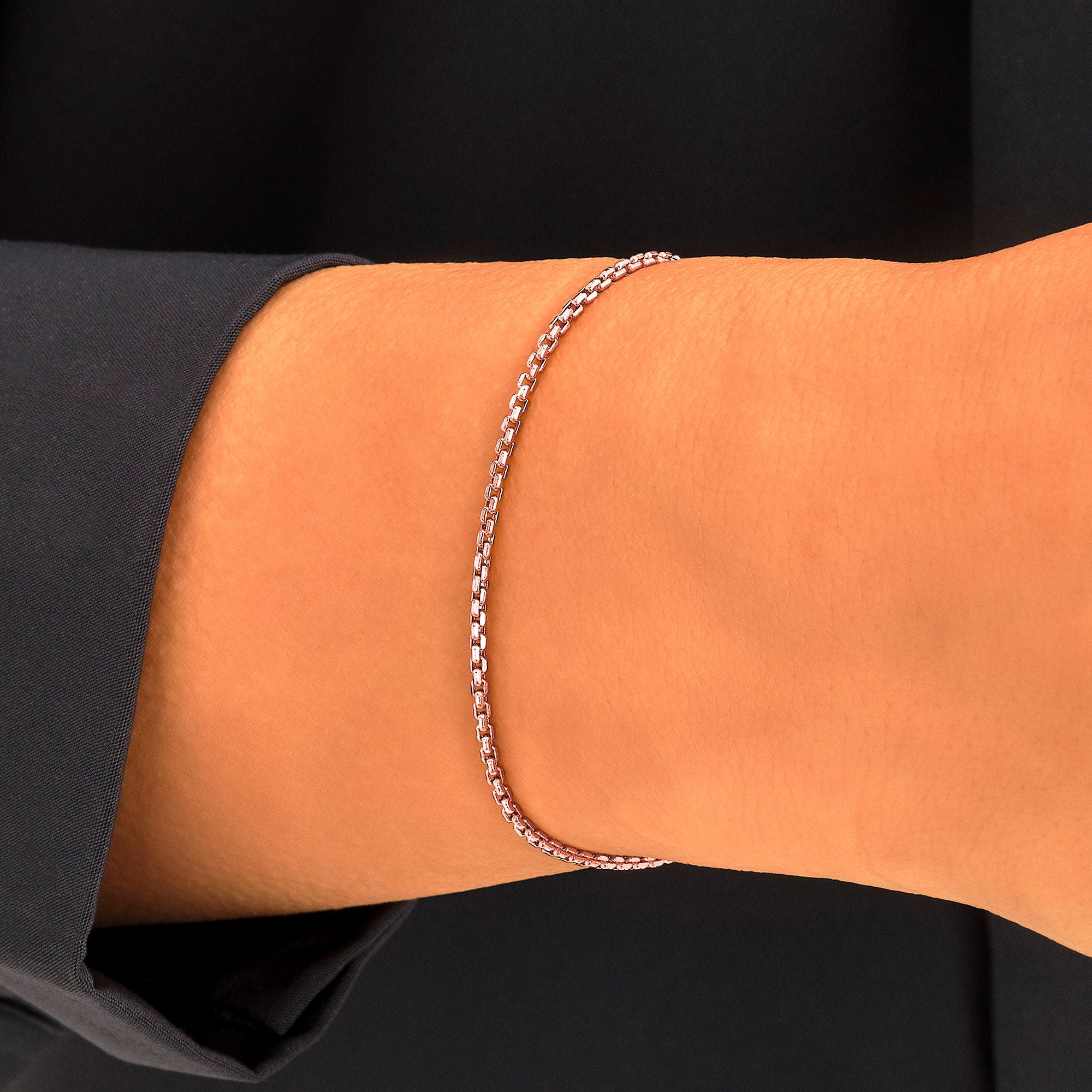The bracelet showcases the iconic box chain: uniformly shaped gold links that lock into a smooth, structured chain, polished to a warm, consistent shine. Its minimalist design eschews excess detail, letting the inherent luster of 14k solid gold take focus—ideal for everyday wear that won’t feel overdone. For her, it layers beautifully with dainty charm bracelets or thin bangles; for him, it pairs subtly with leather cuffs or other gold chains, adding a touch of refined edge.