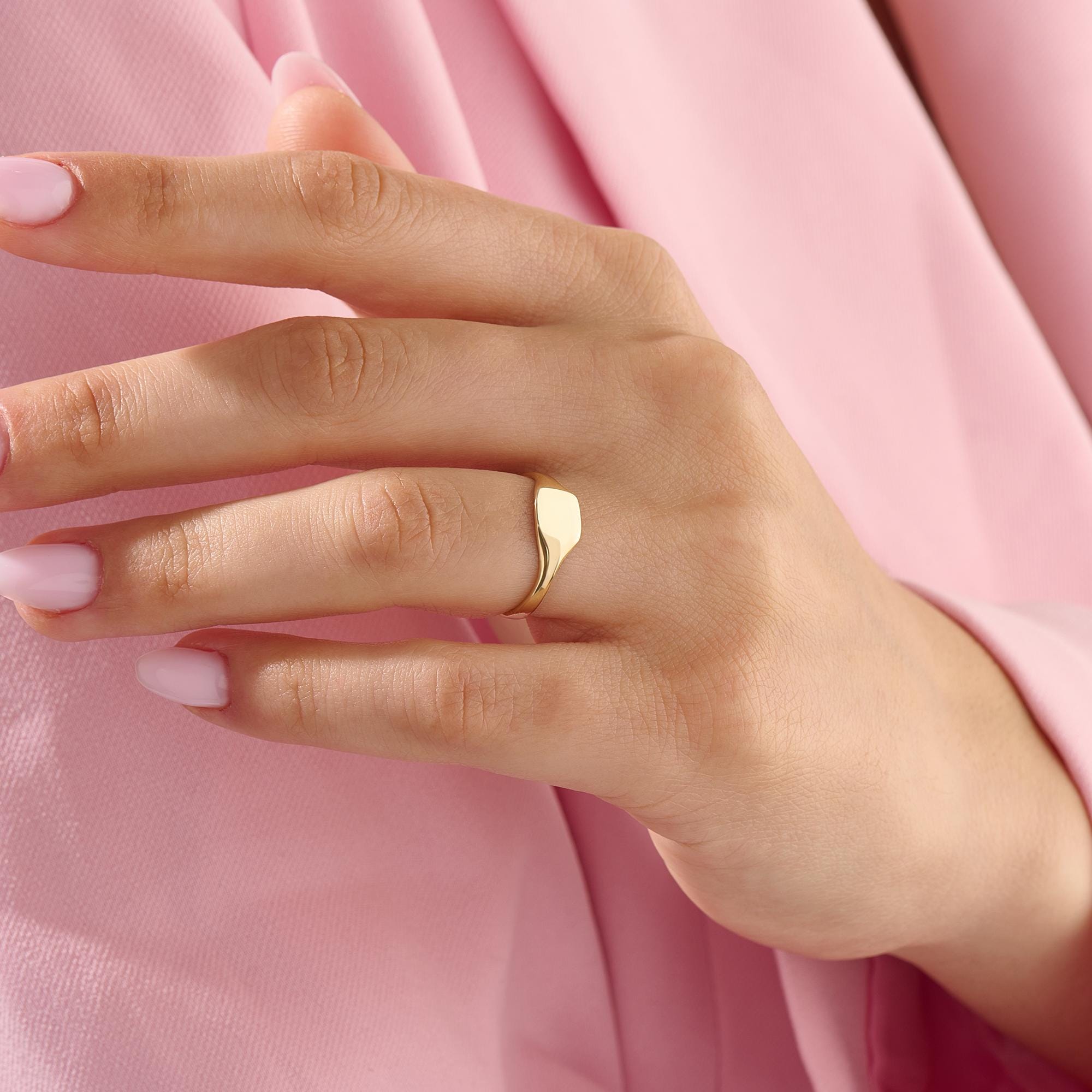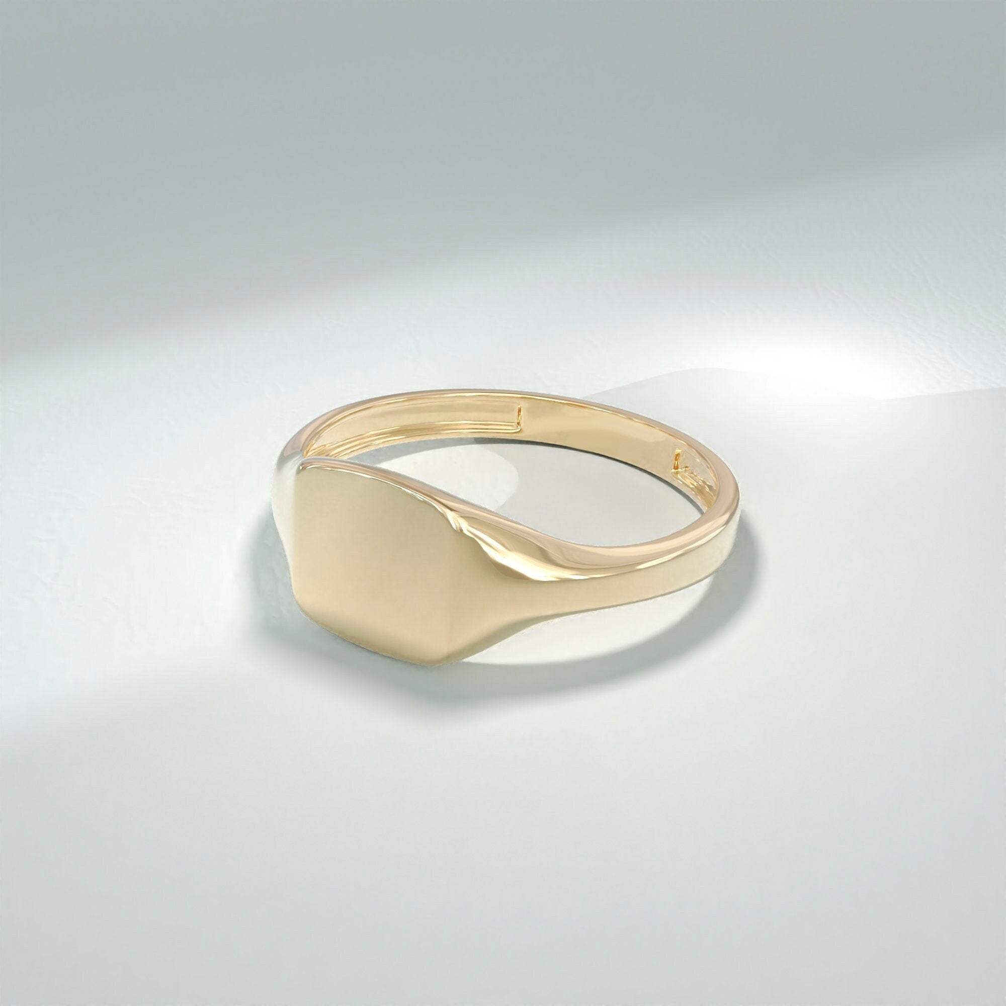 This 14k solid gold personalized signet ring turns a classic design into something deeply yours. Crafted with a crisp square face—perfect for custom engraving—its smooth gold surface can hold initials, a tiny date, or even a meaningful symbol (think: a tiny heart, a birthstone silhouette, or a loved one’s initials). The slim band sits comfortably as a pinky ring for women, yet has a unisex edge that works for any style. Made from solid 14k gold, it’s not just jewelry—it’s a wearable keepsake: the kind of piece you’ll twist absentmindedly on your finger, or gift to her as a “this is uniquely you” gesture. No flashy frills, just warm gold and a personal touch that makes it irreplaceable.