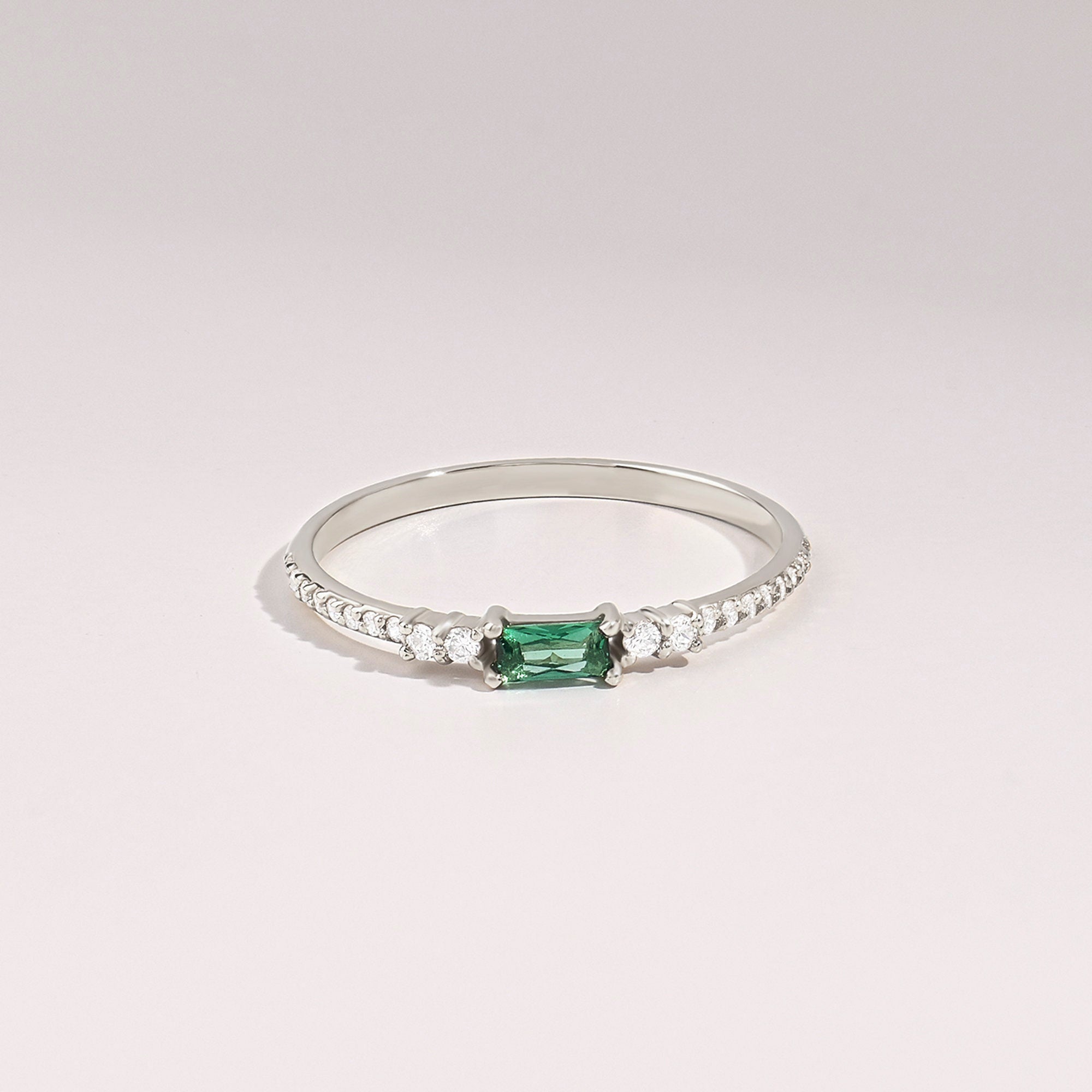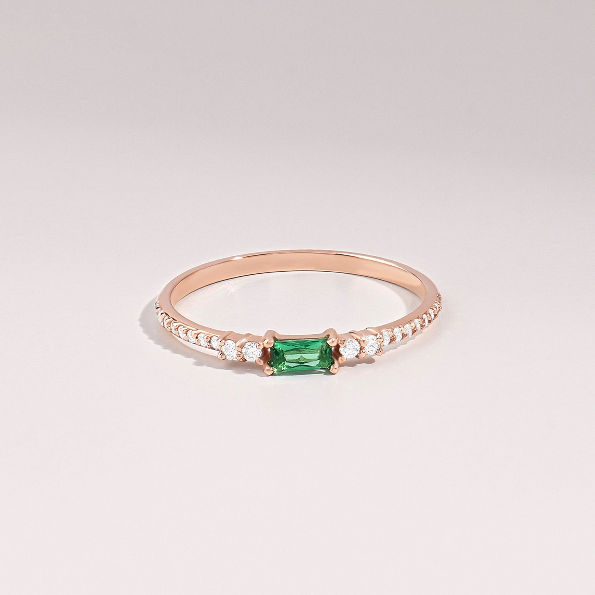 Minimalist Baguette Emerald Ring – 14k Solid Gold with Pavé Diamonds | May Birthstone Gift for Her’s Birthday