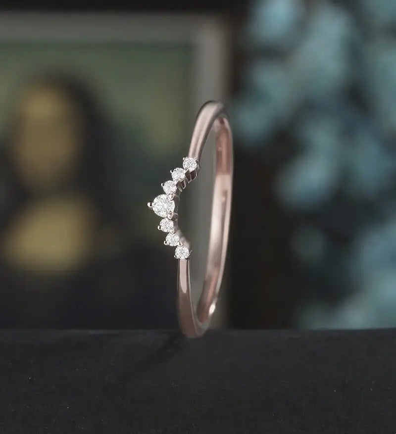 Moissanite Diamond Wedding Bnad Solid Gold Matching Band Marquise Lab Diamond Curved Ring Anniversary Bridal Ring For Her