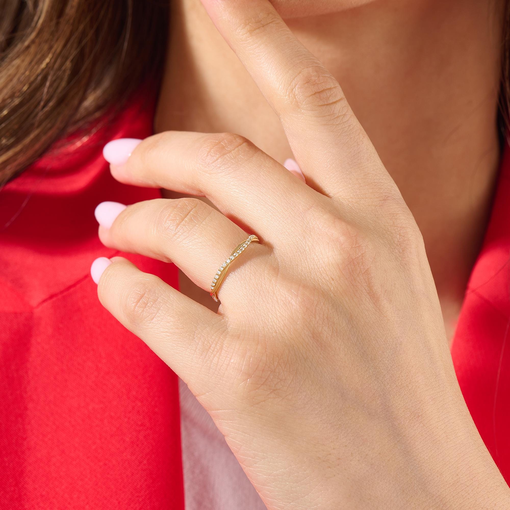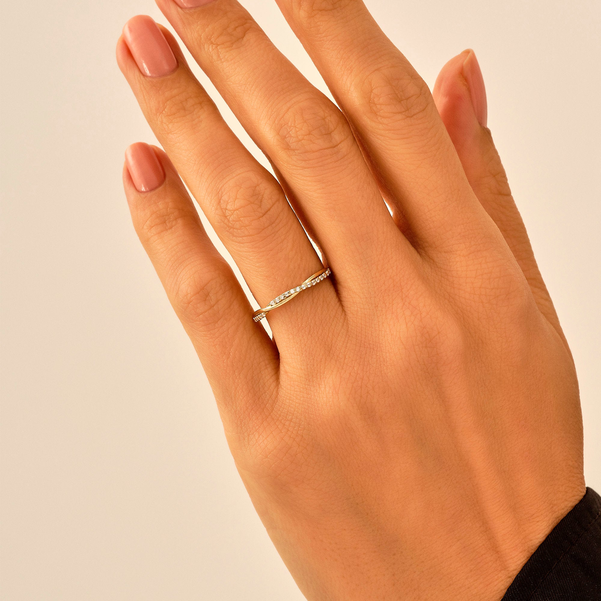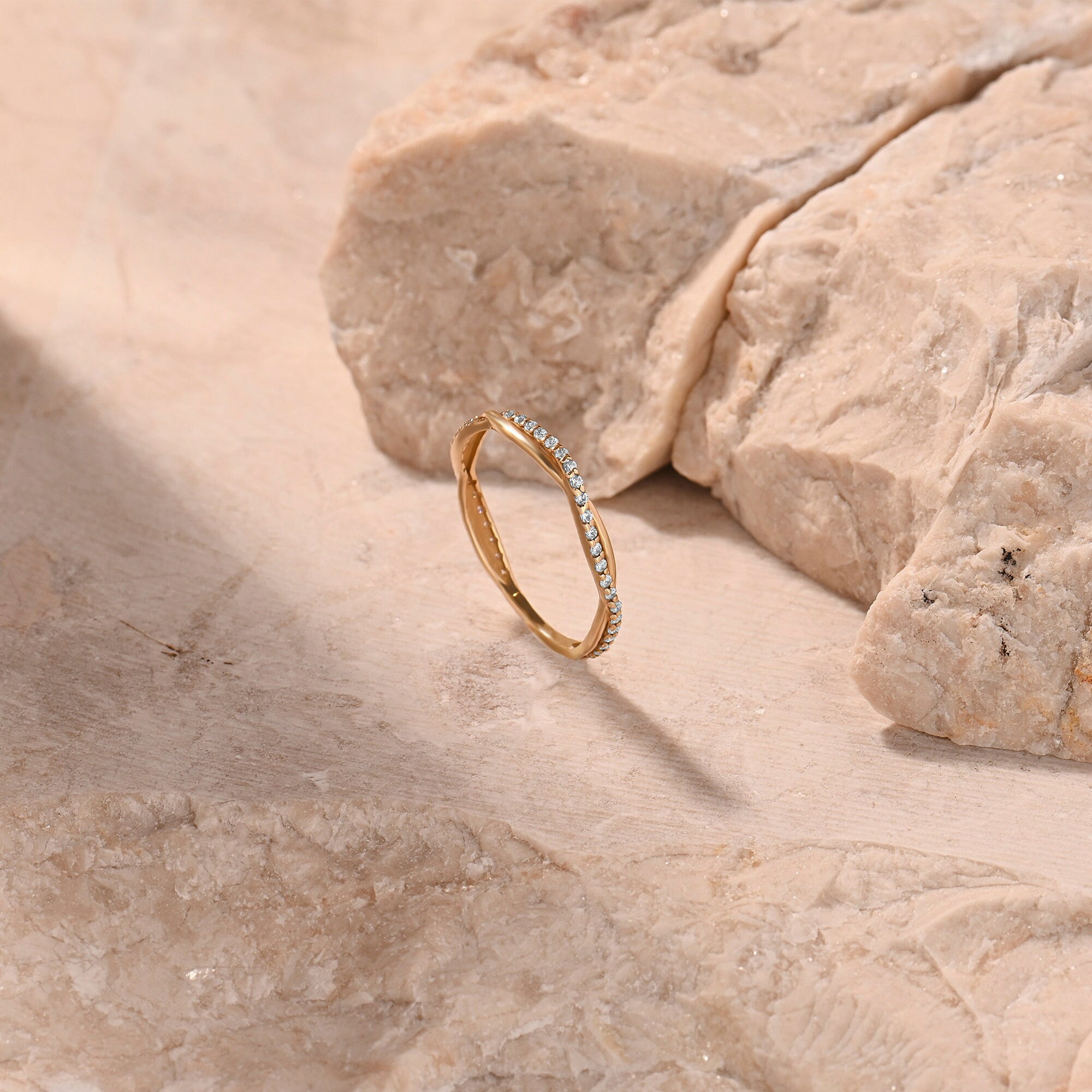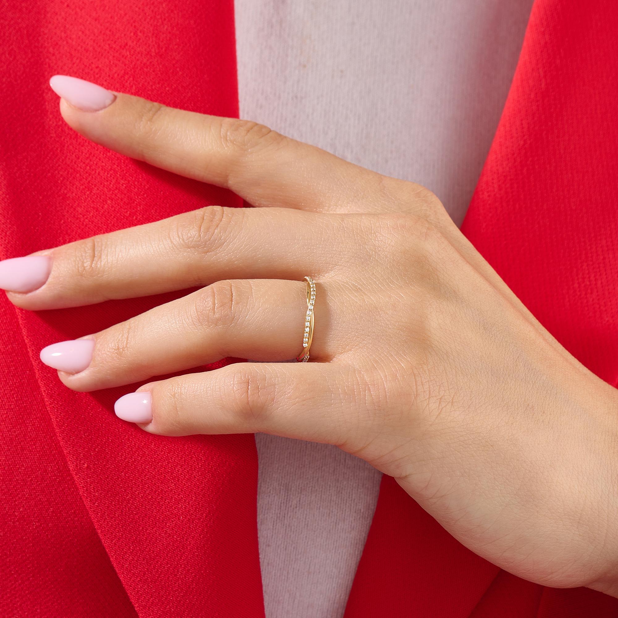 Craftsmanship: Hand-shaped twisted band (no rigid machine lines), precision pave diamond setting, smooth comfort-fit inner band, anti-tarnish gold polishing